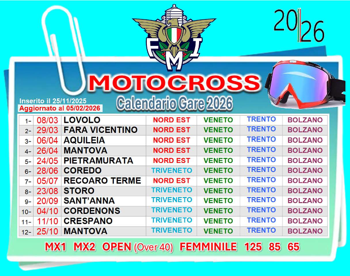 Bozza Calendario Gare motocross 2026